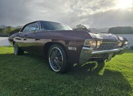 The interior is very original with the window blinds adding a touch of class, the cluster also a show piece in its own right. The engine bay is also very original, running her original v8 383 motor with an automatic box. She has brand new white wall tyres.